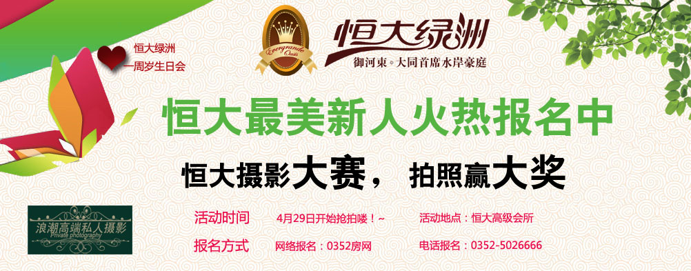 溫馨提示:報名、投票及了解更多活動詳情,敬請撥打活動熱線5026666或登陸0352房網瀏覽相關內容;獎品信息解釋權歸浪潮高端私人攝影所有,本活動最終解釋權歸大同俊景房地產開發有限公司所有。