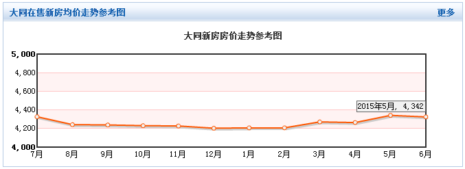 據0352房網數據中心有關大同在售新房均價走勢參考顯示,目前大同在售樓盤,2015年4月份統計大同樓盤均價為4265元/㎡,5月份統計大同樓盤均價為4342元/㎡。房價在2015年5月和4月相比,5月出現小幅上漲。