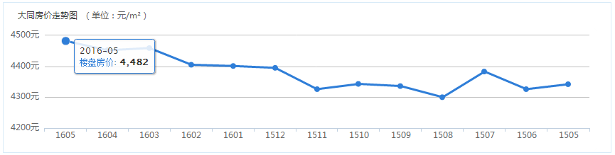 從近幾個(gè)月的房?jī)r(jià)走勢(shì)來(lái)看,大同房屋維持在4400元/㎡-4500元/㎡的均價(jià)區(qū)間,可以說(shuō)是變動(dòng)幅度不大,5月同4月相比是略微有所上漲,每平米上漲30元。分析大同樓市來(lái)看,2016年新開(kāi)盤樓盤較少,政府收購(gòu)萬(wàn)余套商品房進(jìn)行安置,房源少促使樓盤漲價(jià);其次,5月份受到節(jié)假日及營(yíng)銷推廣節(jié)點(diǎn)的雙重影響,樓盤優(yōu)惠和活動(dòng)較多,促進(jìn)了人們的購(gòu)買力。所以,大同5月房屋均價(jià)略有小漲也是在情理中。